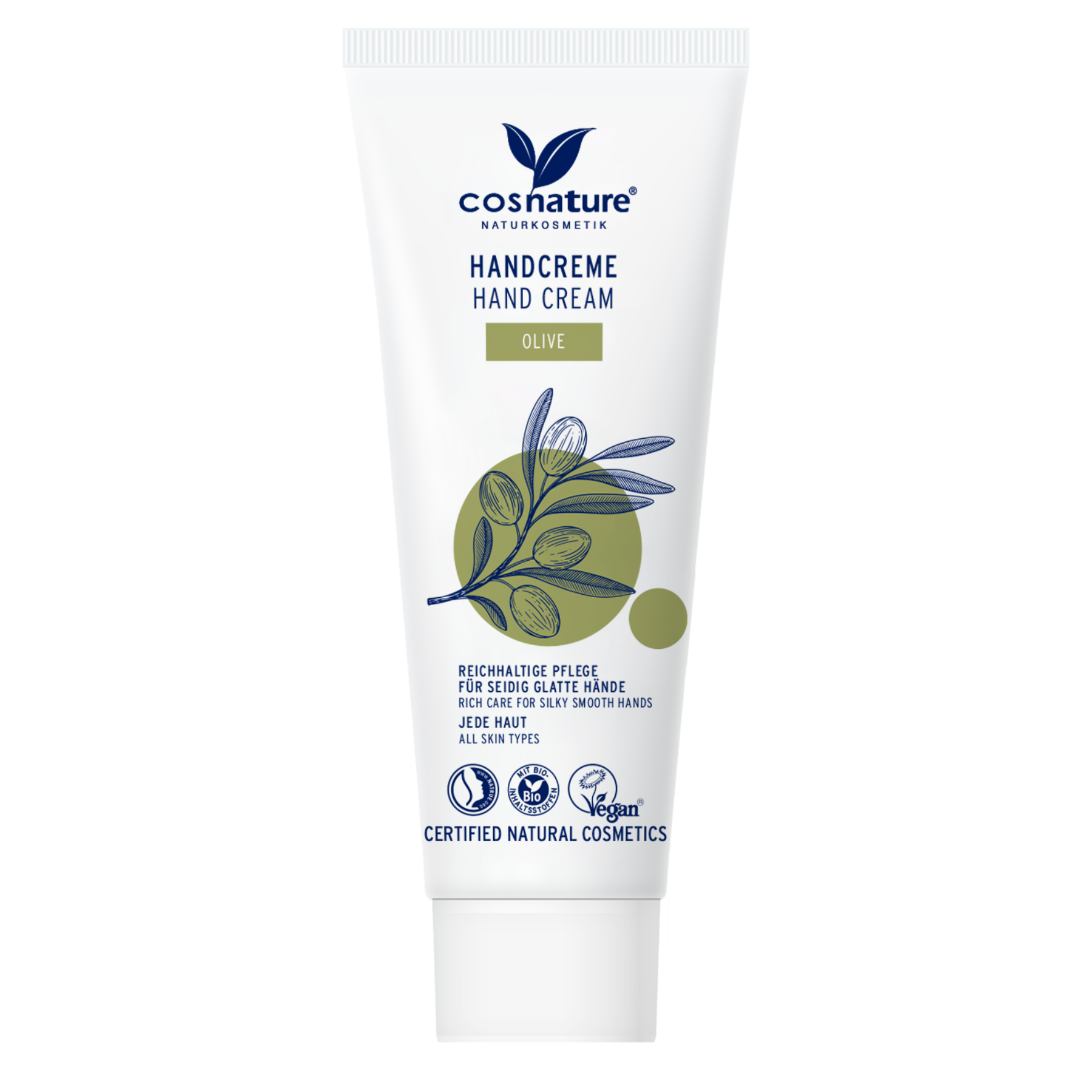 Cosnature HAND CREAM OLIVE with selected organic olive oil and organic argan oil leaves dry and stressed skin feeling noticeably soft. The formula moisturises for up to 24 hours, is quickly absorbed and leaves the skin feeling pleasently smooth-without being greasy.